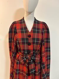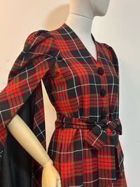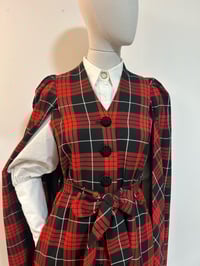 Made from British-woven tartan this luxurious piece features in-seam pockets and is fully lined in recycled polyester lining. The cape sleeves are lined. It has feature velvet buttons as standard but you can request alternatives if so desired.
